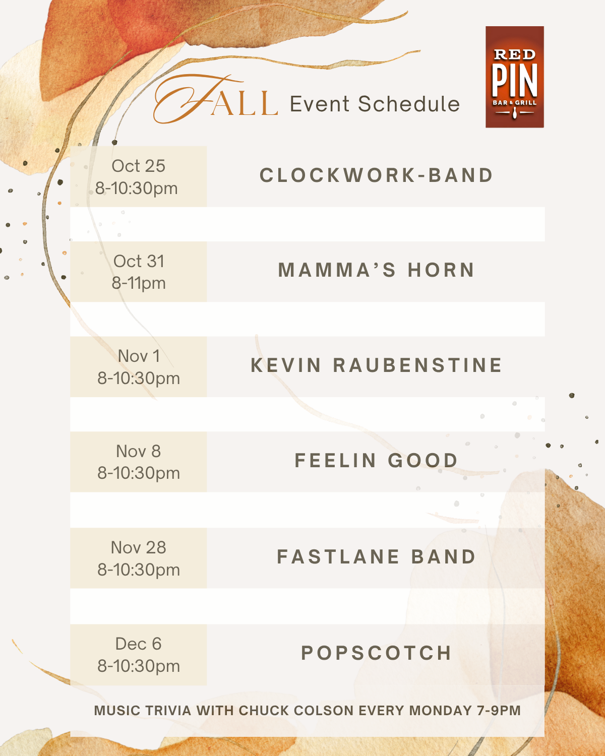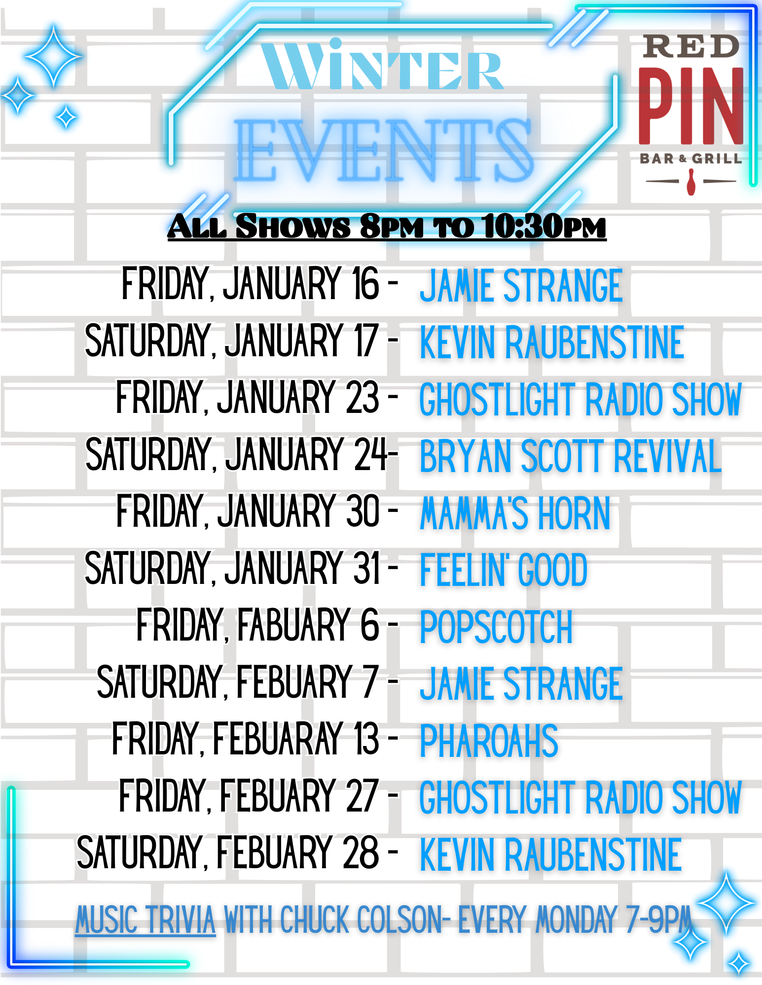Every weekend, our Restaurant, Red Pin Bar and Grill, hosts local music entertainment to strengthen our connection to our community. We are proud to be one of Lancaster’s live music venues. Check out our calendar of live events below!